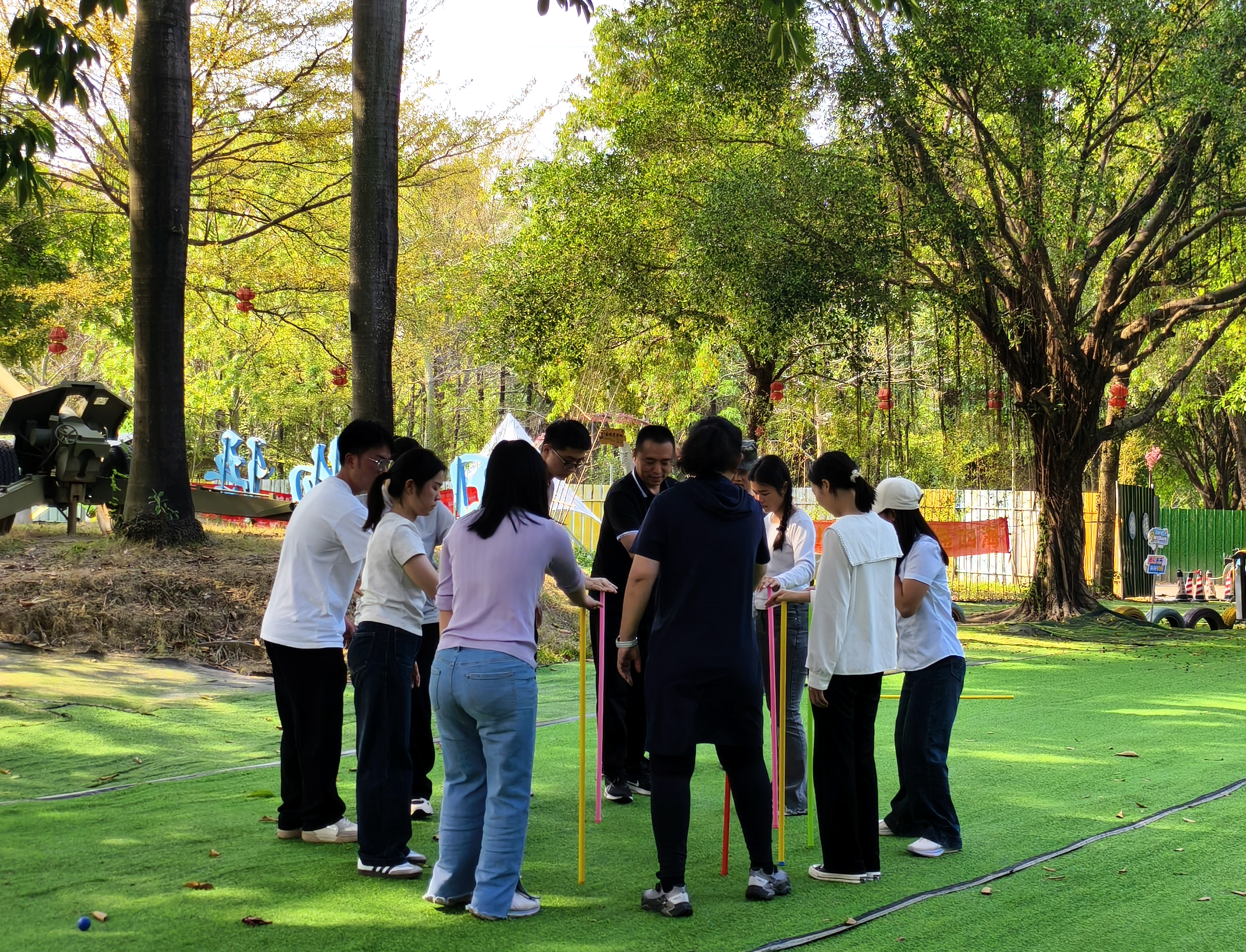 活動伊始,大家首先參觀了黃埔軍校,在講解員的帶領下,認真觀看史料圖文和實物展品,了解黃埔軍校波瀾壯闊的歷史,重溫歷史記憶,感受光輝歷程。在團隊拓展環節,全體人員分成兩組,在珠行萬里、不倒森林、鼓舞飛揚等趣味小游戲中齊心協力,積極發揮團隊力量,互相比拼,充分展現了青年員工的蓬勃朝氣和昂揚向上的精神風貌。