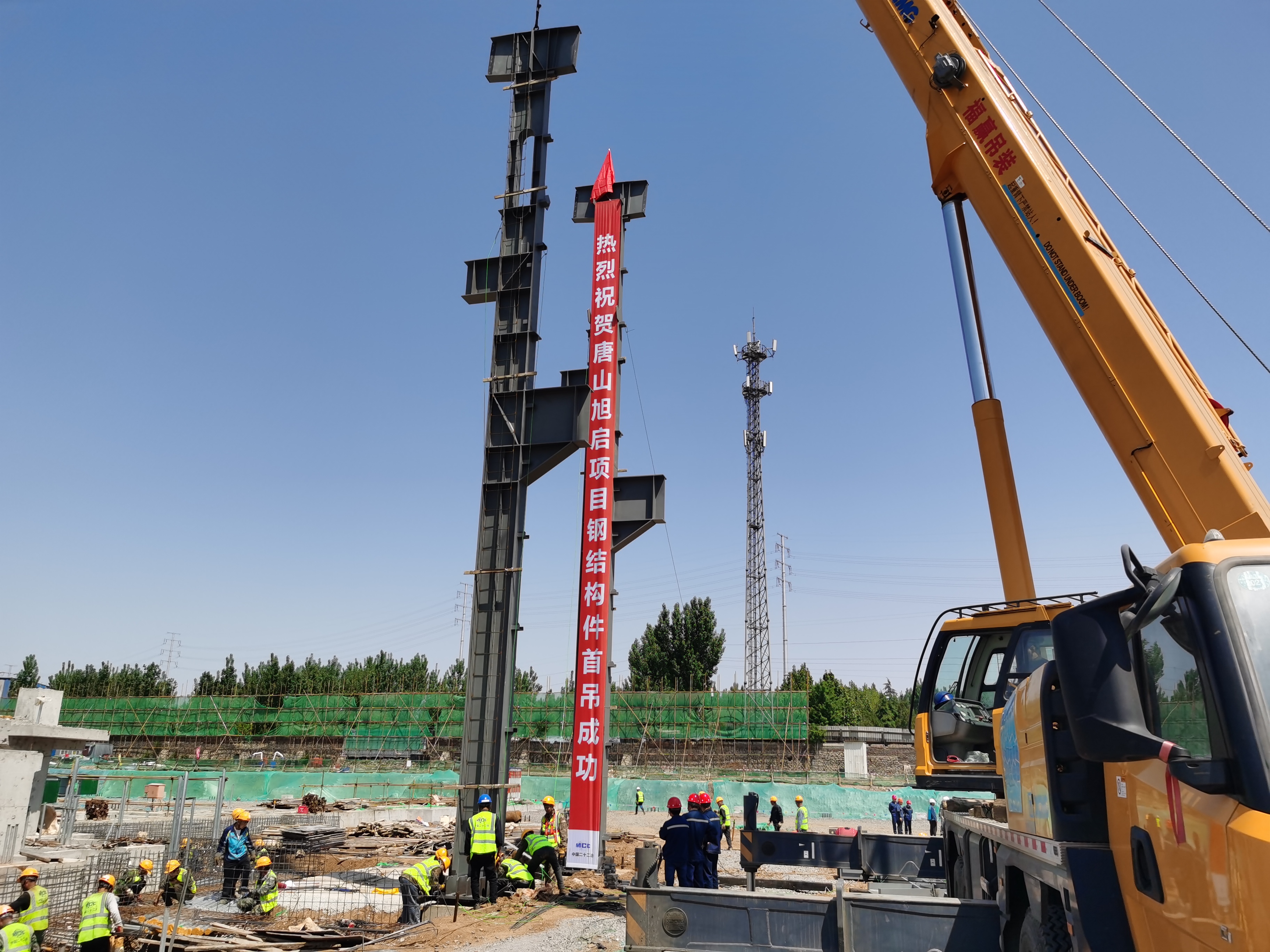 機電公司唐山旭啟項目鋼結構首吊成功