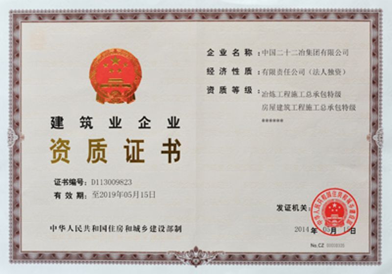 中國二十二冶集團施工資質