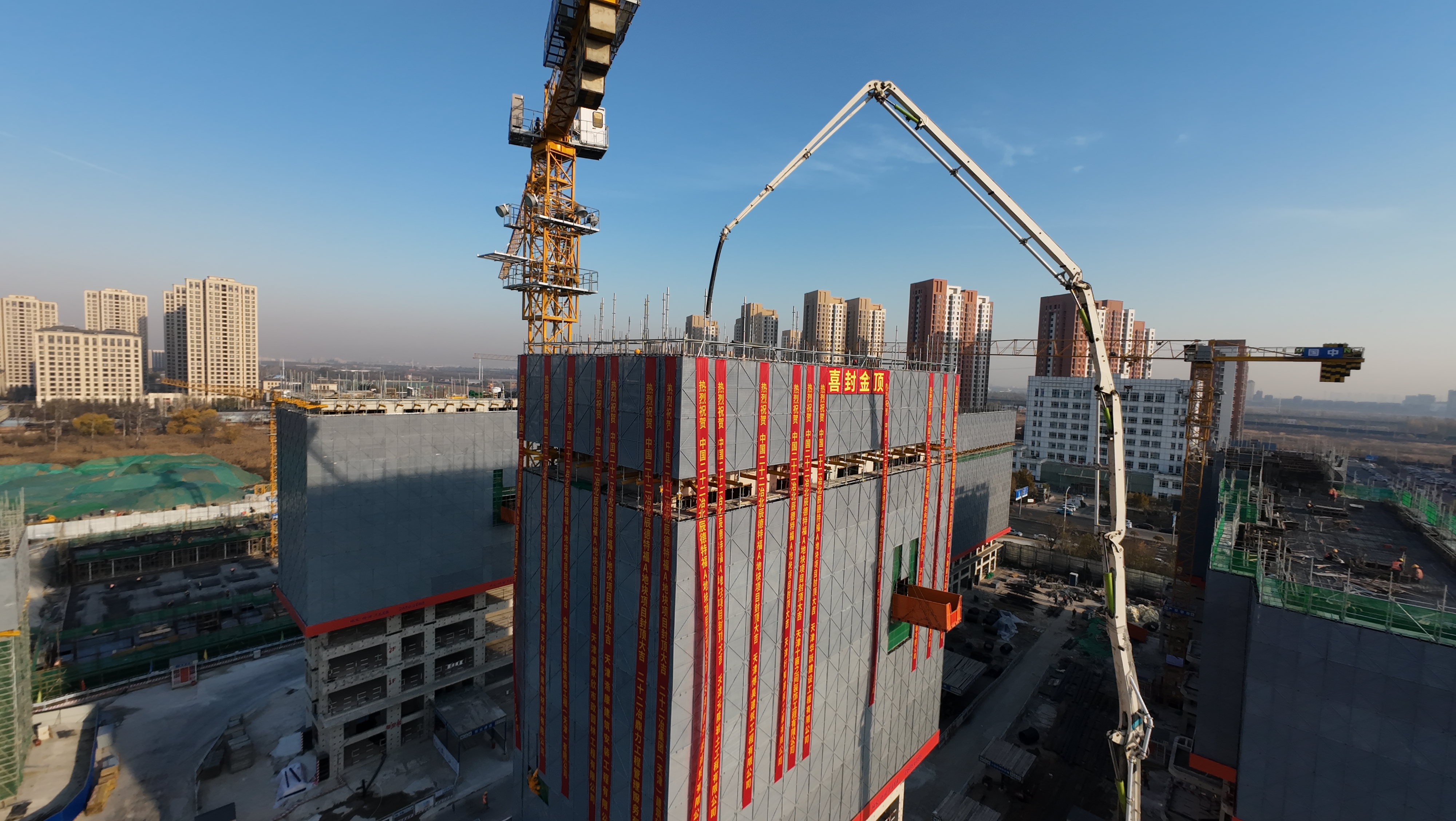 11月22日,天津公司承建的北辰德特福A地塊項目樓王7號樓喜封金頂,這一里程碑式節點標志著工程建設將邁入新的施工階段,為項目按期竣工交付奠定基礎。